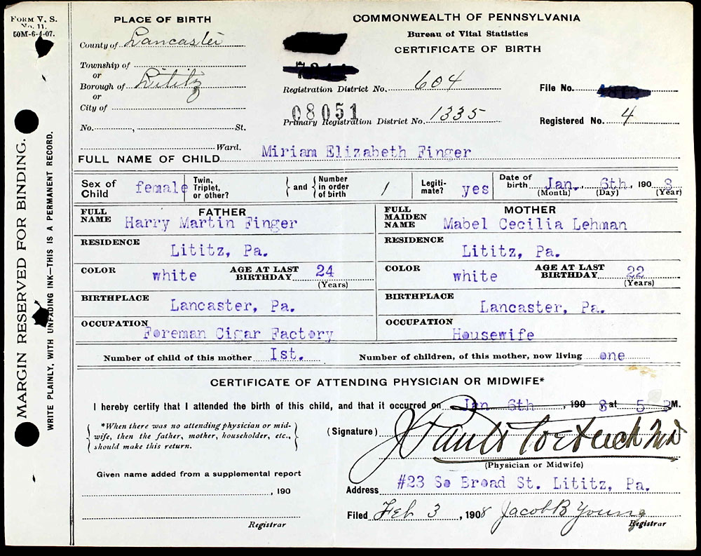 | Father | Mother Mabel Cecilia Lehman 1887- #15412 |